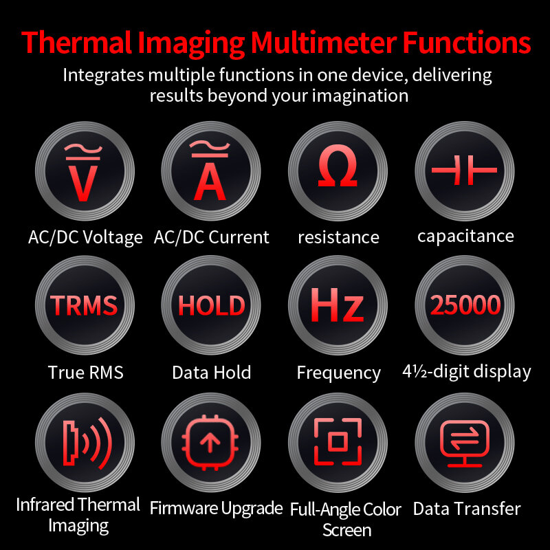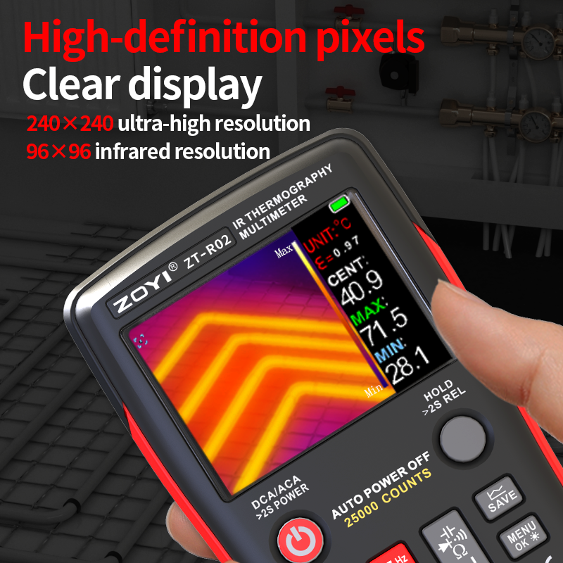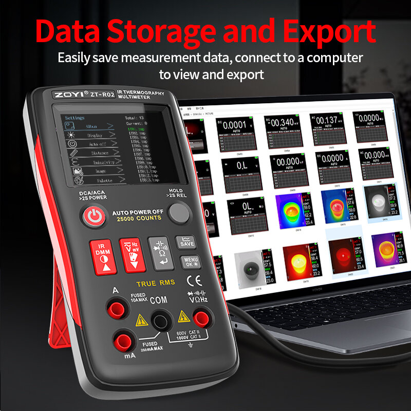 1 x ZOYI ZT-R02 Infrared Thermography Device 1 x USB Type-C Cable 2 x Multimeter Probes 1 x User Manual 1 x Storage Bag Optional:(Only # B contains) 1 x Protective Carrying Case
